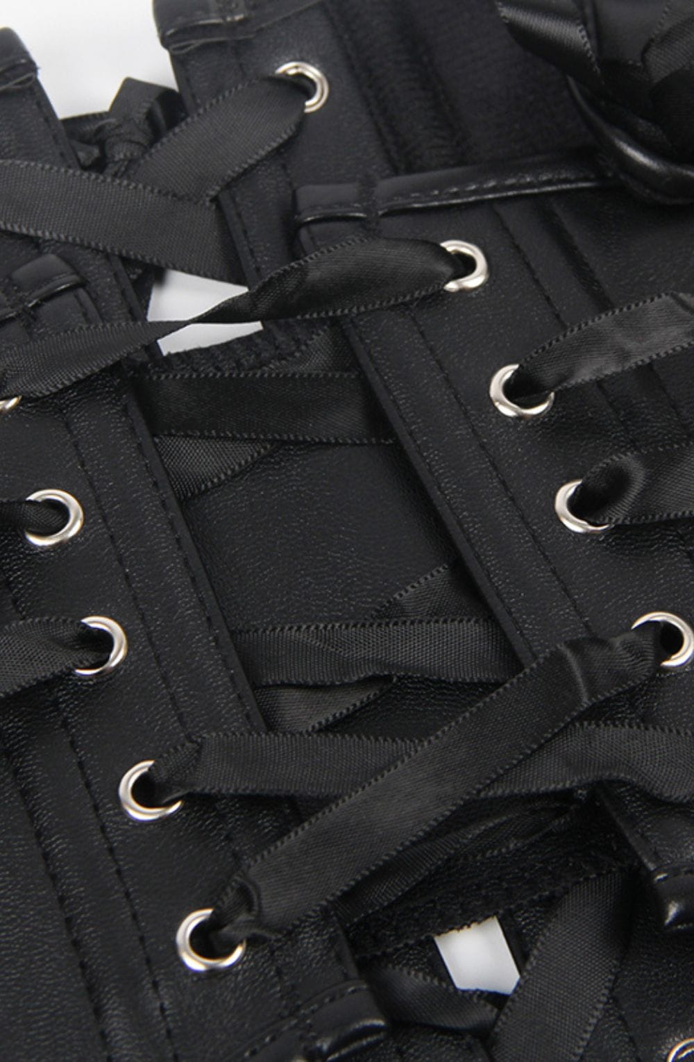 Step up your style game with this fierce leather-look corset-inspired crop top, designed to contour your curves with comfort and confidence. Featuring supportive shoulder straps, structured seams, and an adjustable lace-up back, this edgy top blends corset styling with modern wearability.