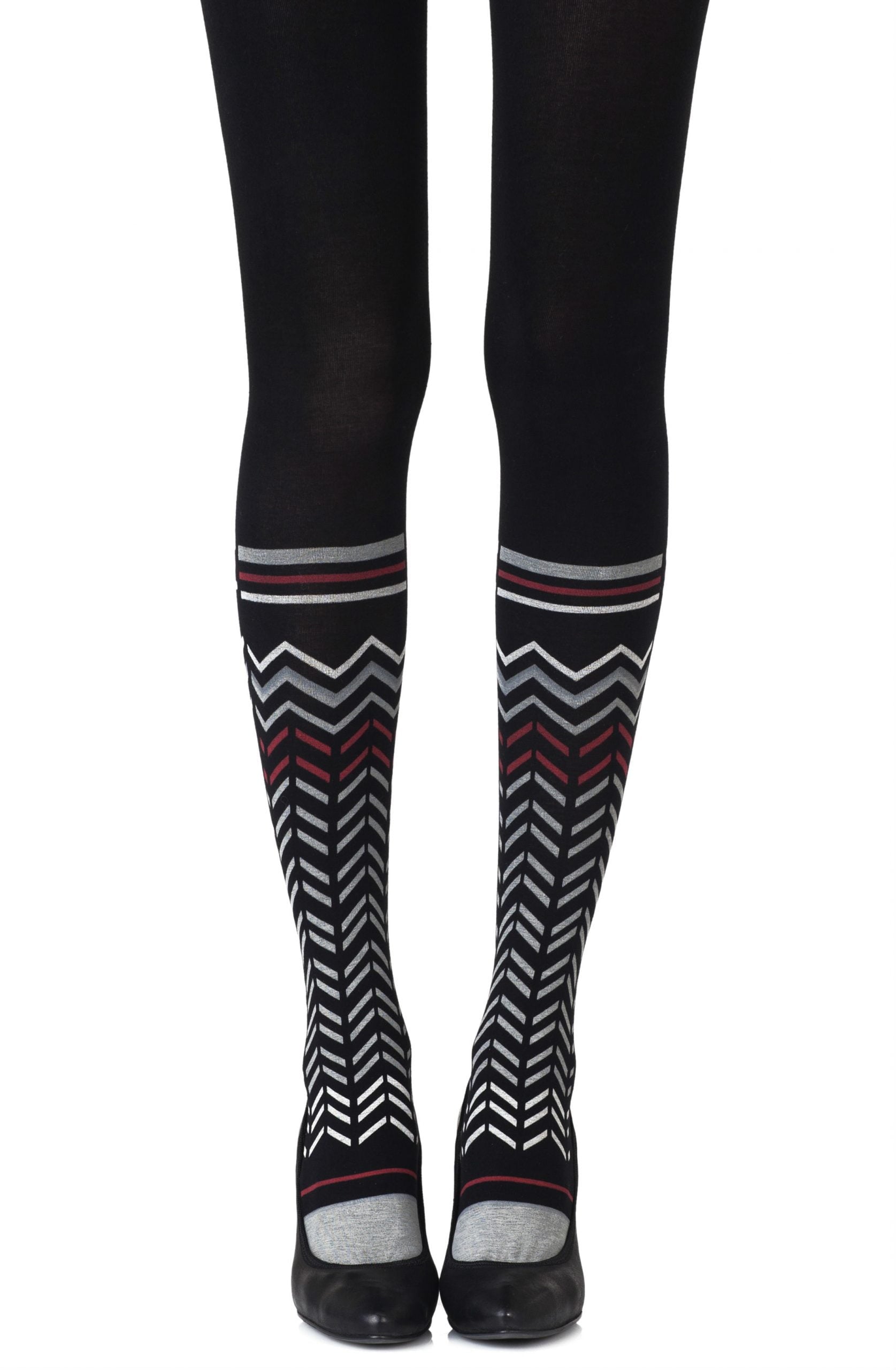 Feel Coachella vibes even in the winter with Zig Zag Walk tights. Featuring a sock-style zig zag print pair with your most fringey items. Colour: Black tights with Grey Burgundy print. Thickness: 100 denier. Made from Cotton. Unless they have X-ray vision no one will be able to see through these opaque tights. Get athletic with our two-sided knee-high sock-style print. Hand print no two are the same.