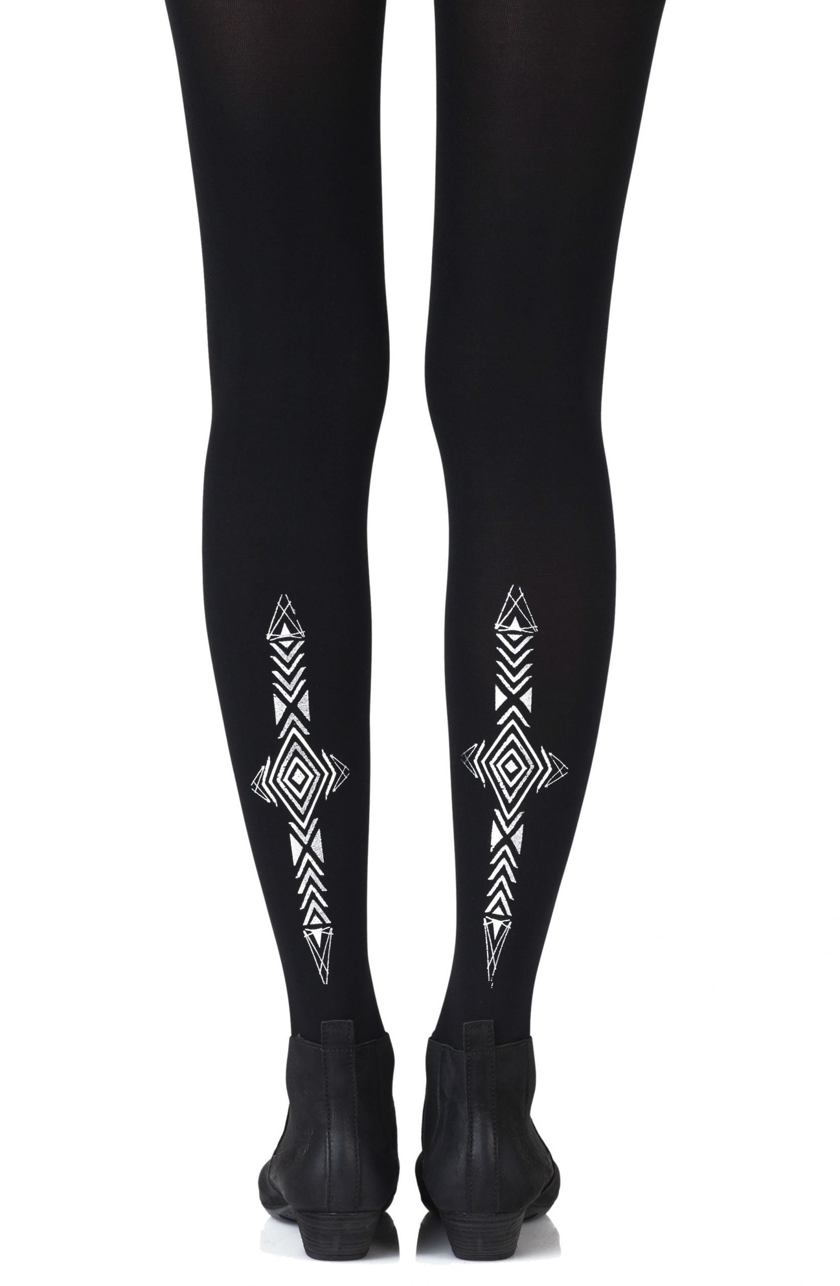 These tights are every girl's best friend. Diamonds Are Forever feature an all over diamond inspired pattern that will flatter and lengthen your legs. Colour: Black tights with Grey Silver print. Thickness: 120 denier. No doubt you will shine with our metallic prints. Please note that these prints require extra care when washing and will naturally fade with wear. Unless they have X-ray vision no one will be able to see through these opaque tights. Is the party in the front or the back? You choose with reversible tights where to place all the fun. Hand print no two are the same.