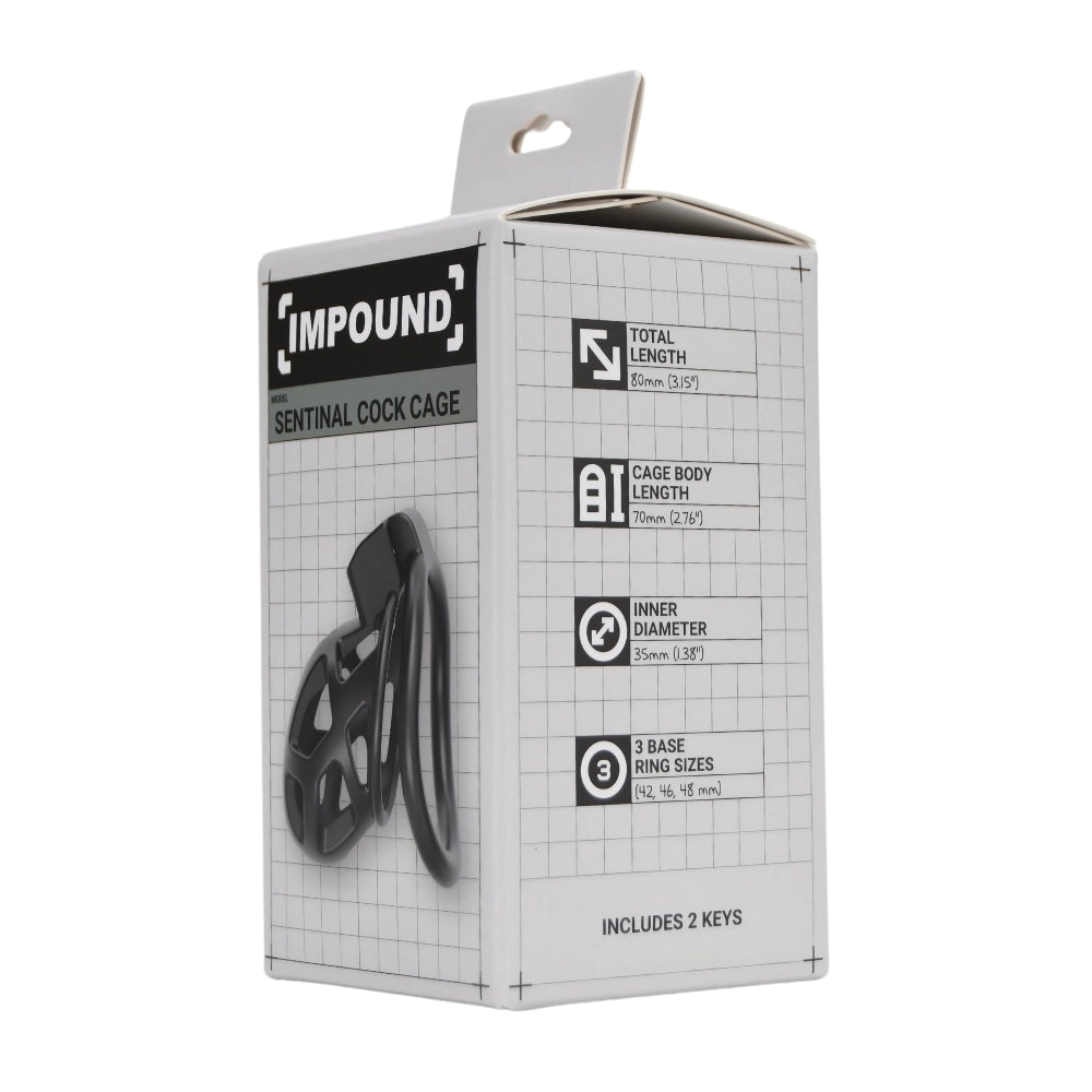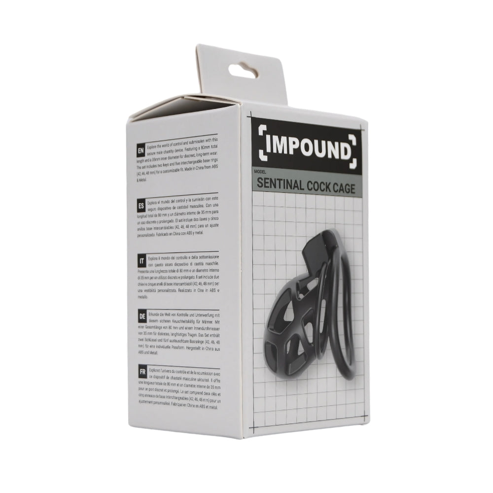 Slim, lightweight, and built for secure submission - the Impound Sentinel Cock Cage is designed for discreet chastity play without compromising on restraint. With a sleek and compact 80mm profile and an airy, open-vented structure, it's ideal for long-term wear and hygiene. The 35mm inner diameter provides a snug fit, while three interchangeable base rings ensure maximum comfort and control. Made from ultra-light ABS with a touch of metal reinforcement, the Sentinel weighs just 28.5g - making it a perfect choice for beginners and pros alike.